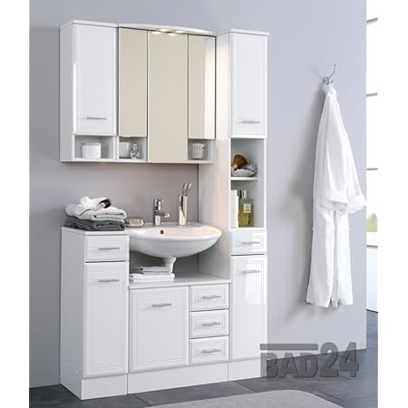 Sie bekommen ein badmöbel set günstig unter anderem mit zwei schränken die rechts und links von spiegelschrank und.