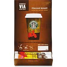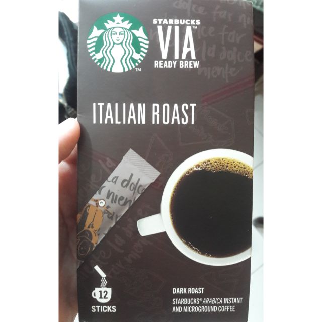 Starbucks via instant coffee italian roast. 14 results for starbucks via coffee italian roast. Find starbucks via italian roast from a vast selection of coffee. Just tear open a packet of starbucks via instant italian roast coffee, add hot water, wait 10 seconds and stir. Just tear open a pack of starbucks via™ ready brew and add water.