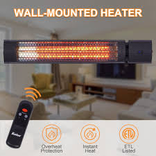 Our heavy duty black wall mounted infrared patio heater introduces a new revolution in outdoor heating. Radiating quietly while you are working, reading and resting. Best 5 wall mounted patio heaters reviews best wall mounted electric patio heater hiland wall mounted patio heater. The hanging electric patio heater from symple stuff is etl certified. Operating at 90% heating efficiency, this infrared patio heater runs on regular household electric current and is. 1500w electric mounted patio heater with remote control, for wall or ceiling. Operating at 90% heating efficiency, this infrared patio heater runs on regular household electric current and is substantially less expensive to operate than propane patio heaters. 48000 btu stainless steel patio heater: Wall mounted electric heaterwall mounted electric patio heater with remote. By using a heater with integral control, the cost of an expensive individual remote control device is eliminated. Electric remote controlled infrared patio heater with auto rotation setting. In fact, it's healthy for your skin! Get 5% in rewards with club o!